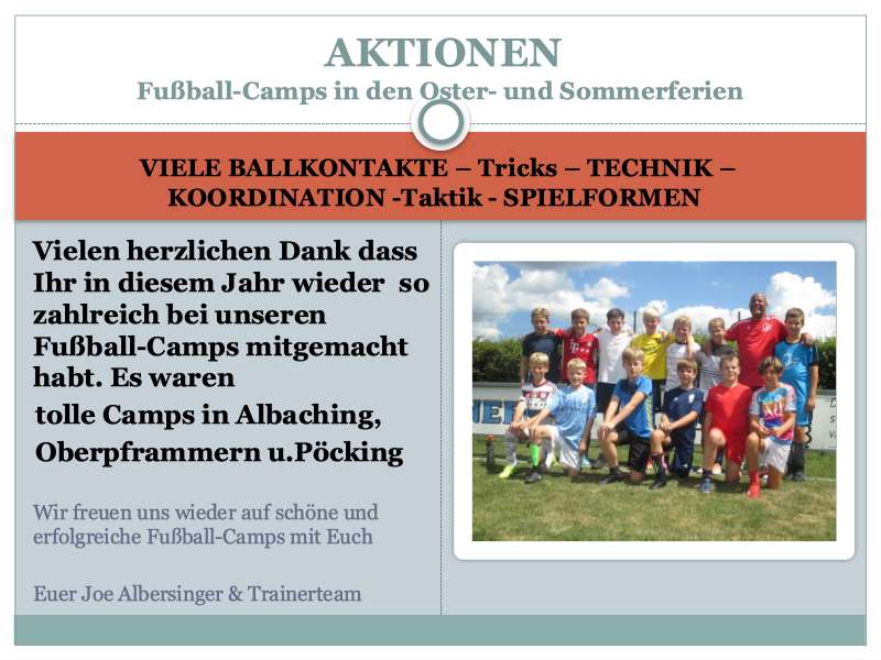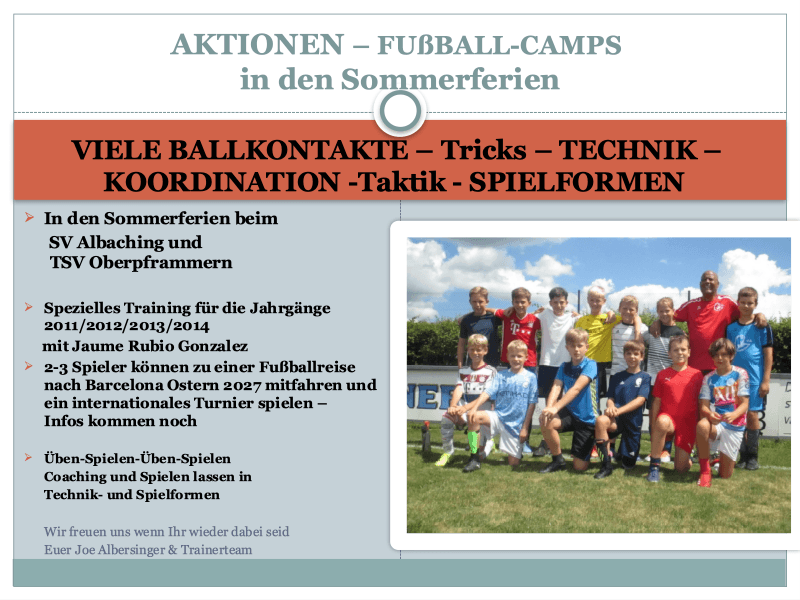 Wir haben das Beste daraus gemacht und sind rücksichtsvoll mit der Situation umgegangen. Vielen Dank an den SV Albaching und an die Gemeinde Albaching, allen voran Bürgermeister Rudolf Schreyer und das Landratsamt Rosenheim, die es ermöglicht haben, dass wir unsere Fußball-Ferien durchführen konnten.